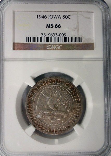 1946 IOWA HALF DOLLAR NGC MS66 SUPER COLOR