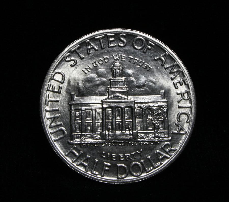A very nice example of the final run of the Old US Commemorative Program. Some nice faint pastel tones on the obverse. The Iowa and the Booker T. Washington were approved on the same day by President Truman and mark an end to the program. When looking at an Iowa Commemorative check for signs of wear on the eagle’s neck and head and on the building’s central pillars. Coin World's Coin Values lists ms66 at $225 and Coin World's Coin Values lists ms66 at $165. Estimated Value $175