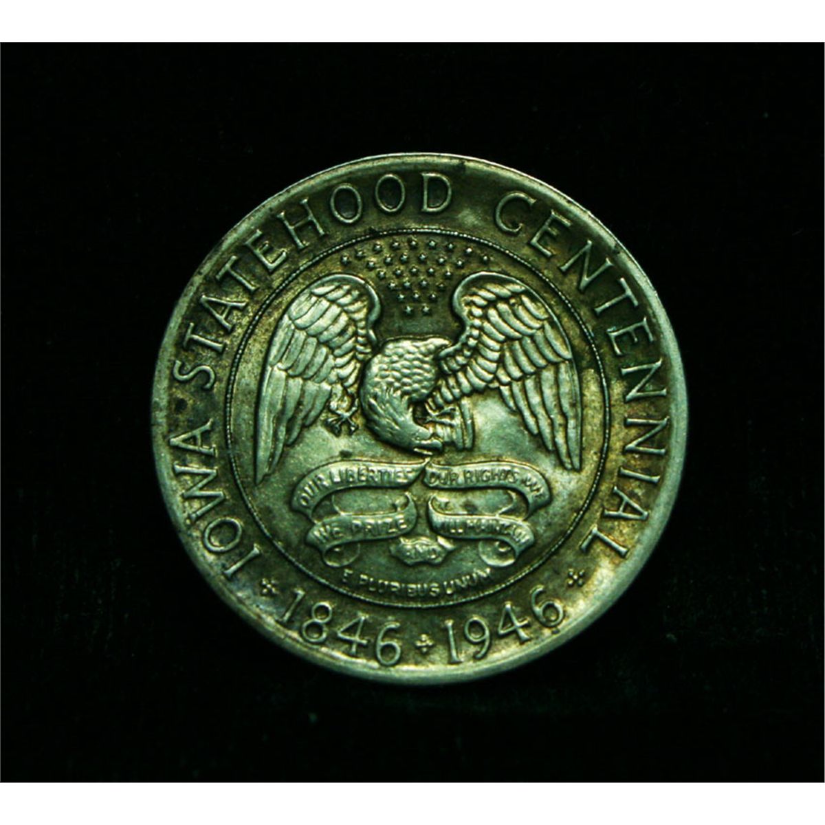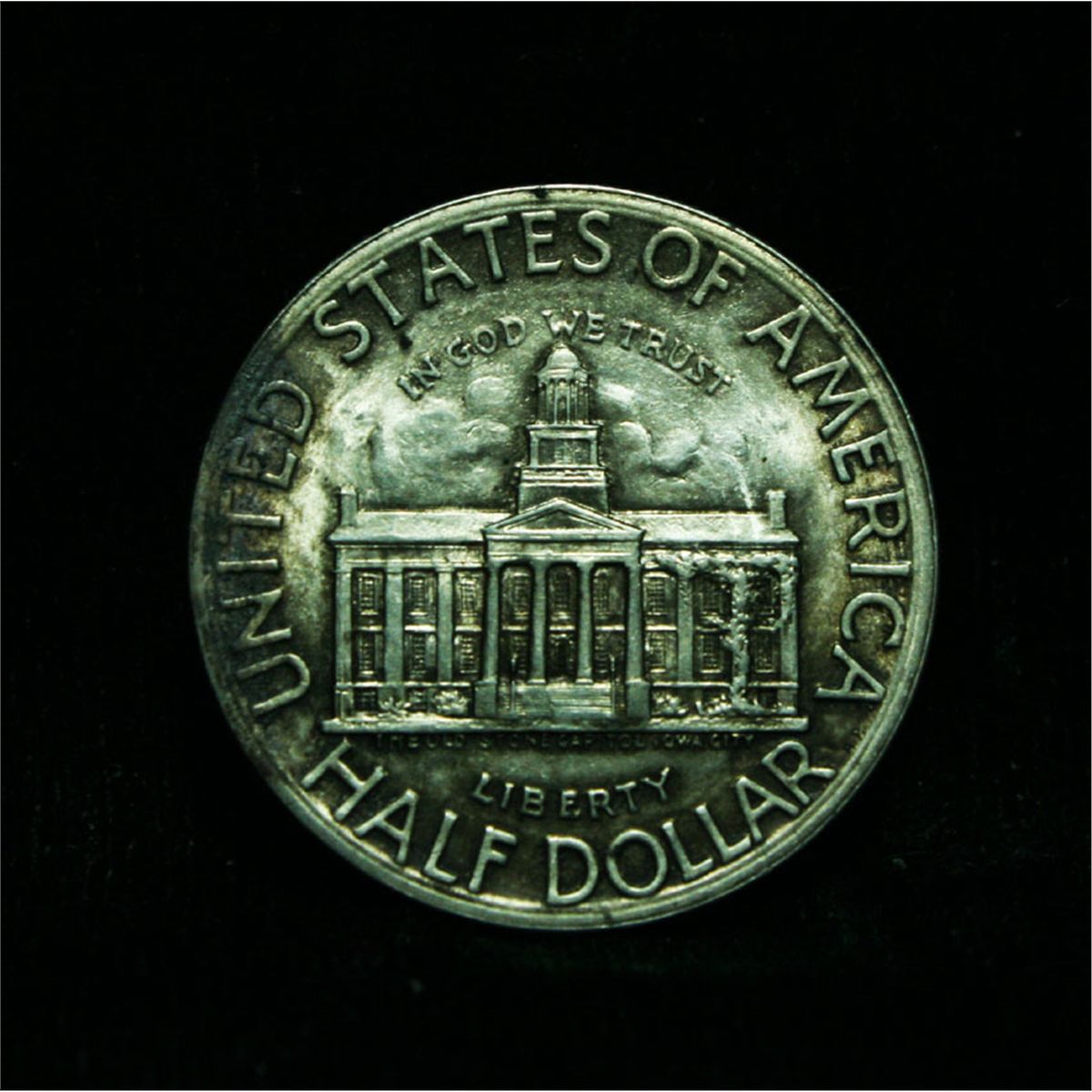 An attractively toned, all original and Lustrous example of this issue. The Iowa Commemorative marks the final run of the Old US Commemorative Program. The Iowa and the Booker T. Washington were approved on the same day by President Truman and mark an end to the program. When looking at an Iowa Commemorative check for signs of wear on the eagle’s neck and head and on the building’s central pillars. The Wholesale Greysheet lists ms63 at $88. Estimated Value $100
