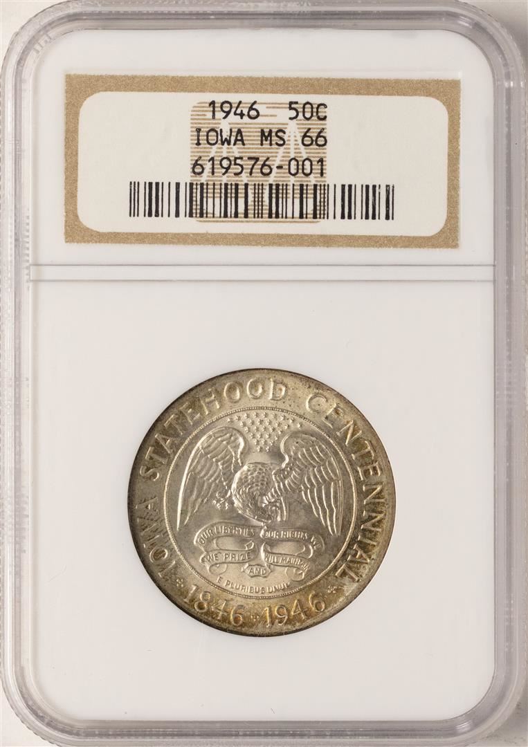 One 1946 Iowa Centennial Commemorative Half Dollar Coin NGC MS66. NGC Certified.