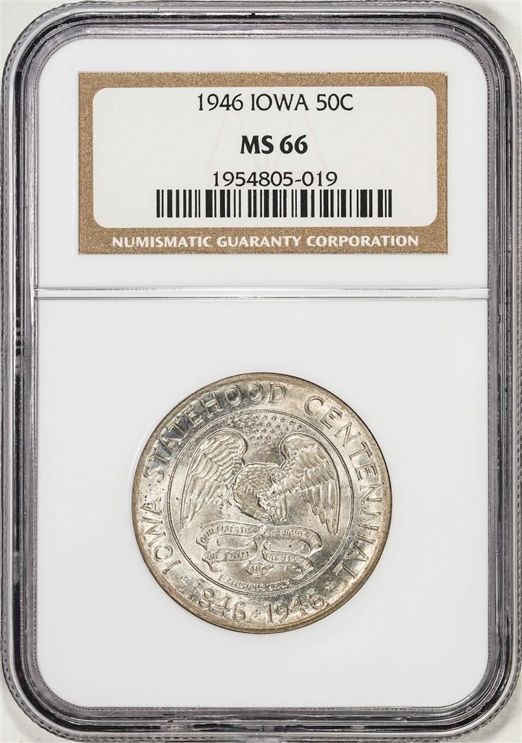 One 1946 Iowa Centennial Commemorative Half Dollar Coin NGC MS66. NGC Certified.