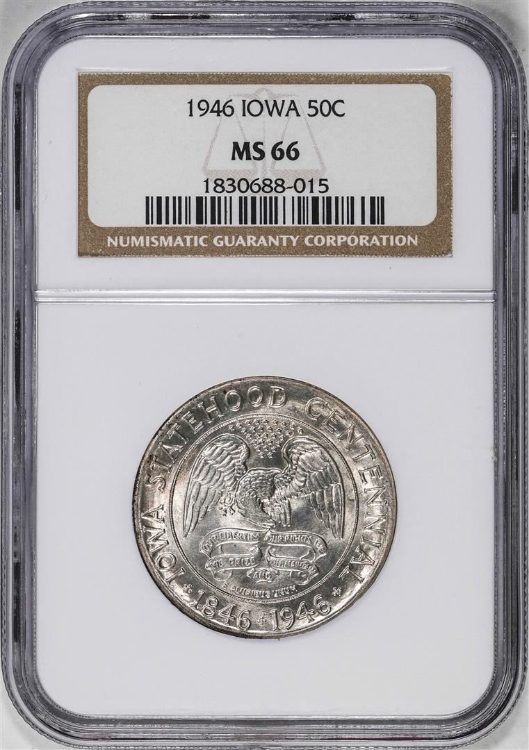 One 1946 Iowa Centennial Commemorative Half Dollar Coin NGC MS66. NGC Certified.