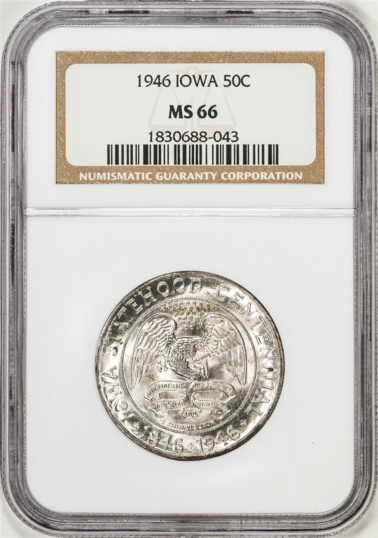 One 1946 Iowa Centennial Commemorative Half Dollar Coin NGC MS66. NGC Certified.
