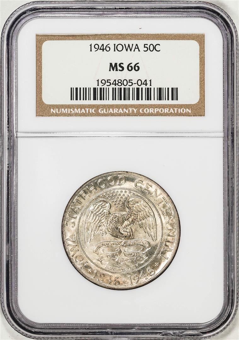 One 1946 Iowa Centennial Commemorative Half Dollar Coin NGC MS66. NGC Certified.