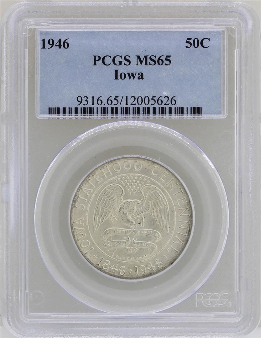 One 1946 Iowa Centennial Commemorative Half Dollar Coin PCGS MS65. PCGS Certified.