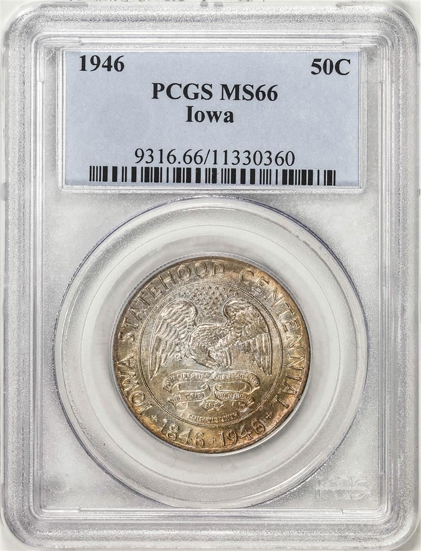 One 1946 Iowa Centennial Commemorative Half Dollar Coin PCGS MS66. PCGS Graded.