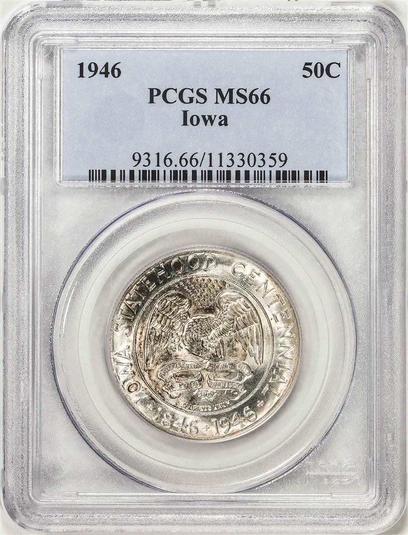 One 1946 Iowa Centennial Commemorative Half Dollar Coin PCGS MS66. PCGS Graded.
