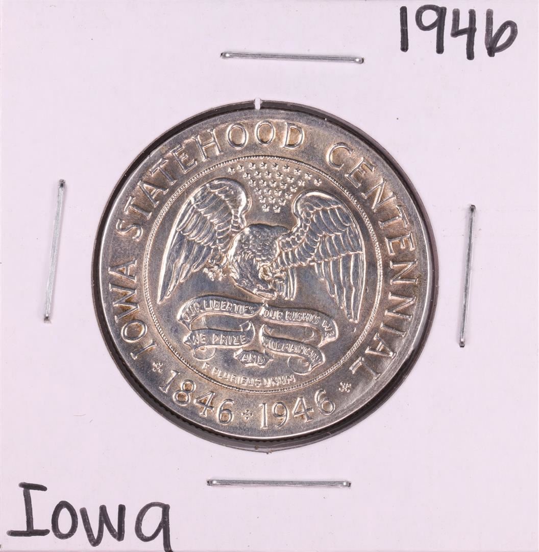 One 1946 Iowa Centennial Commemorative Half Dollar Coin.