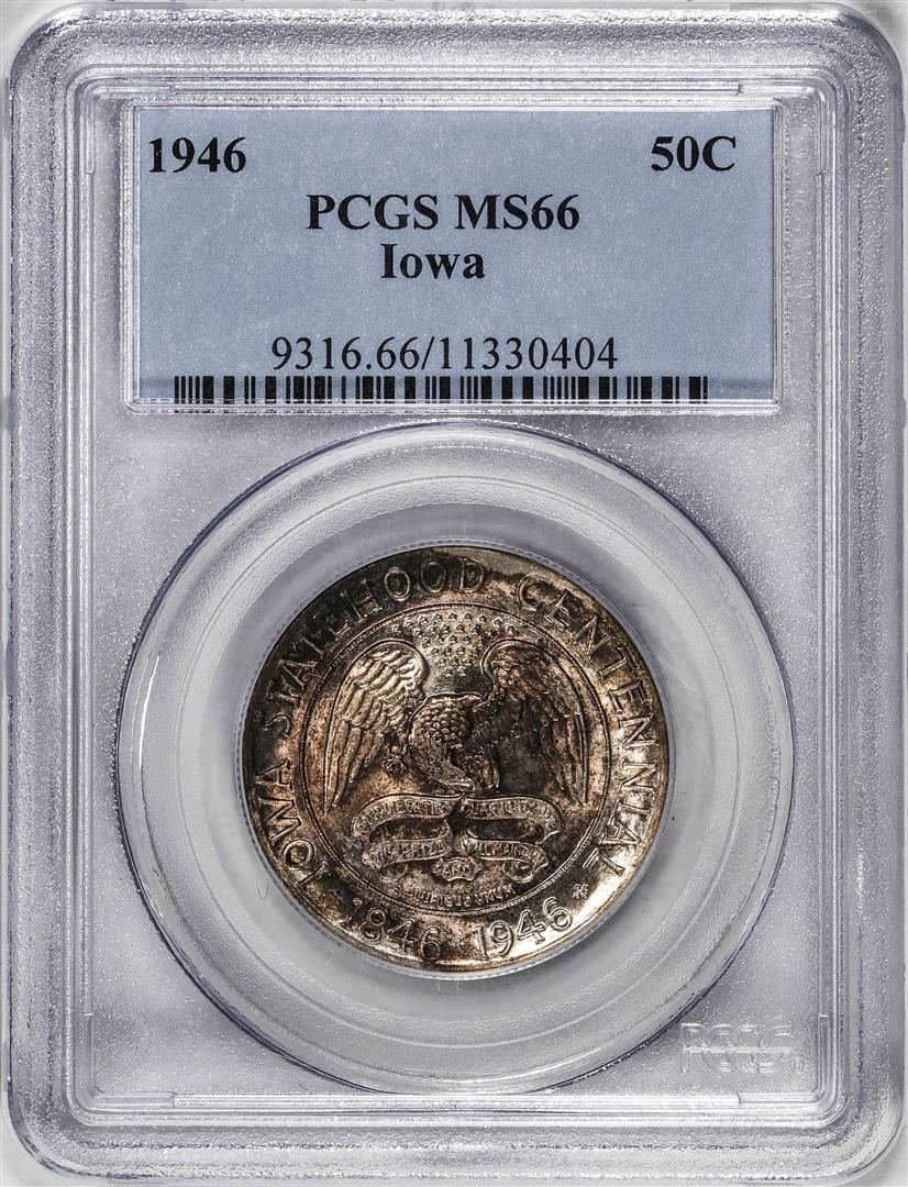 One 1946 Iowa Commemorative Half Dollar Coin PCGS MS66 Nice Toning. PCGS Graded.