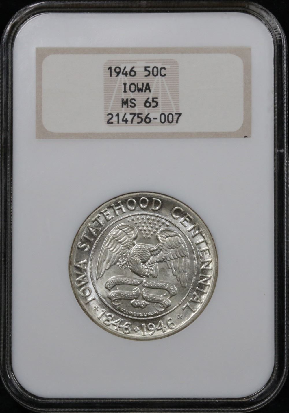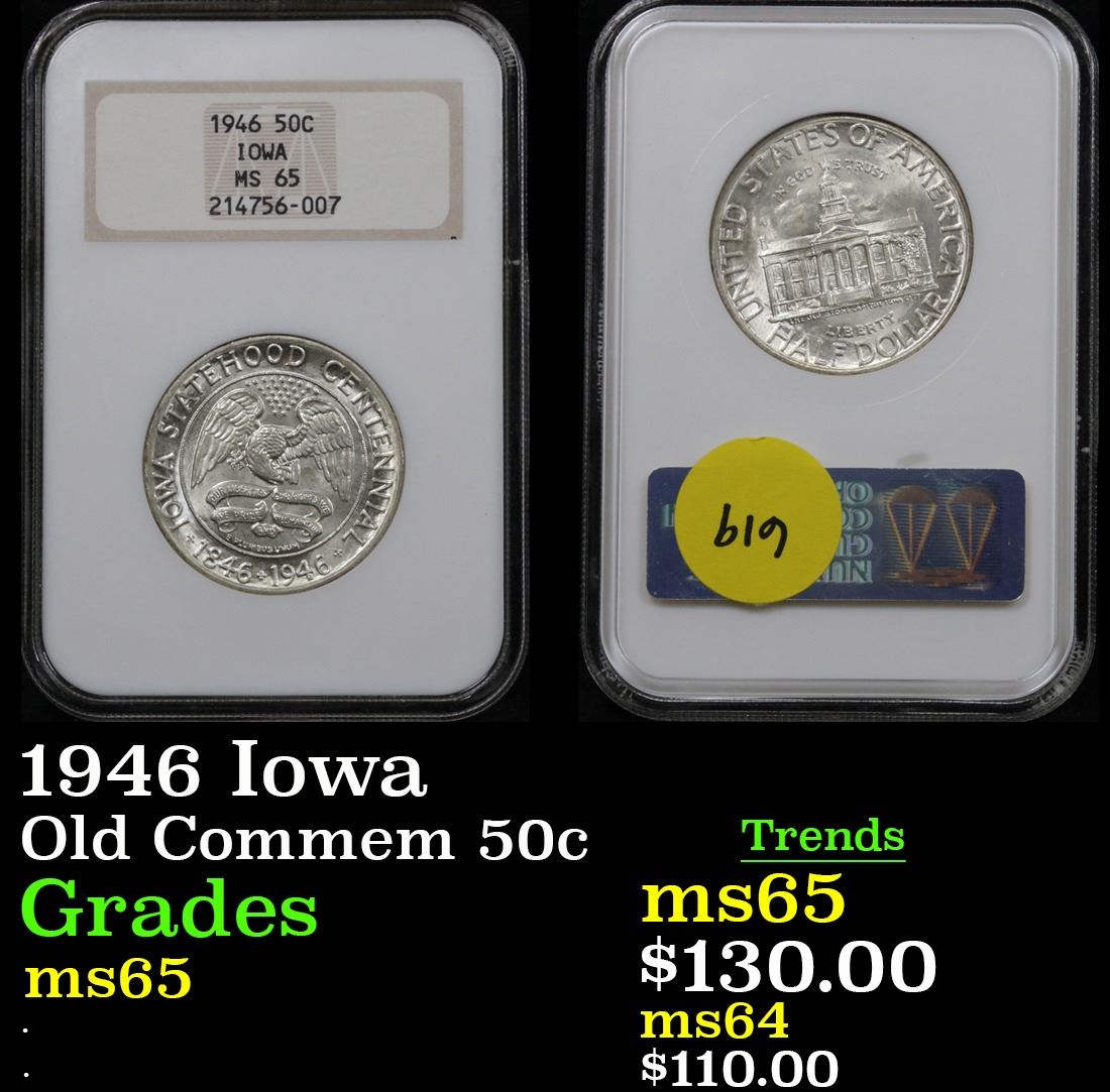1946 Iowa Old Commem Half Dollar 50c Graded GEM By NGCO. The Iowa Commemorative marks the Final Run of the Old US Commemorative Program. The Iowa and the Booker T. Washington were approved on the same day by President Truman and mark an End to the Program. When looking at an Iowa Commemorative, check for signs of wear on the EagleÕs Neck and Head, and on the BuildingÕs Central Pillars.