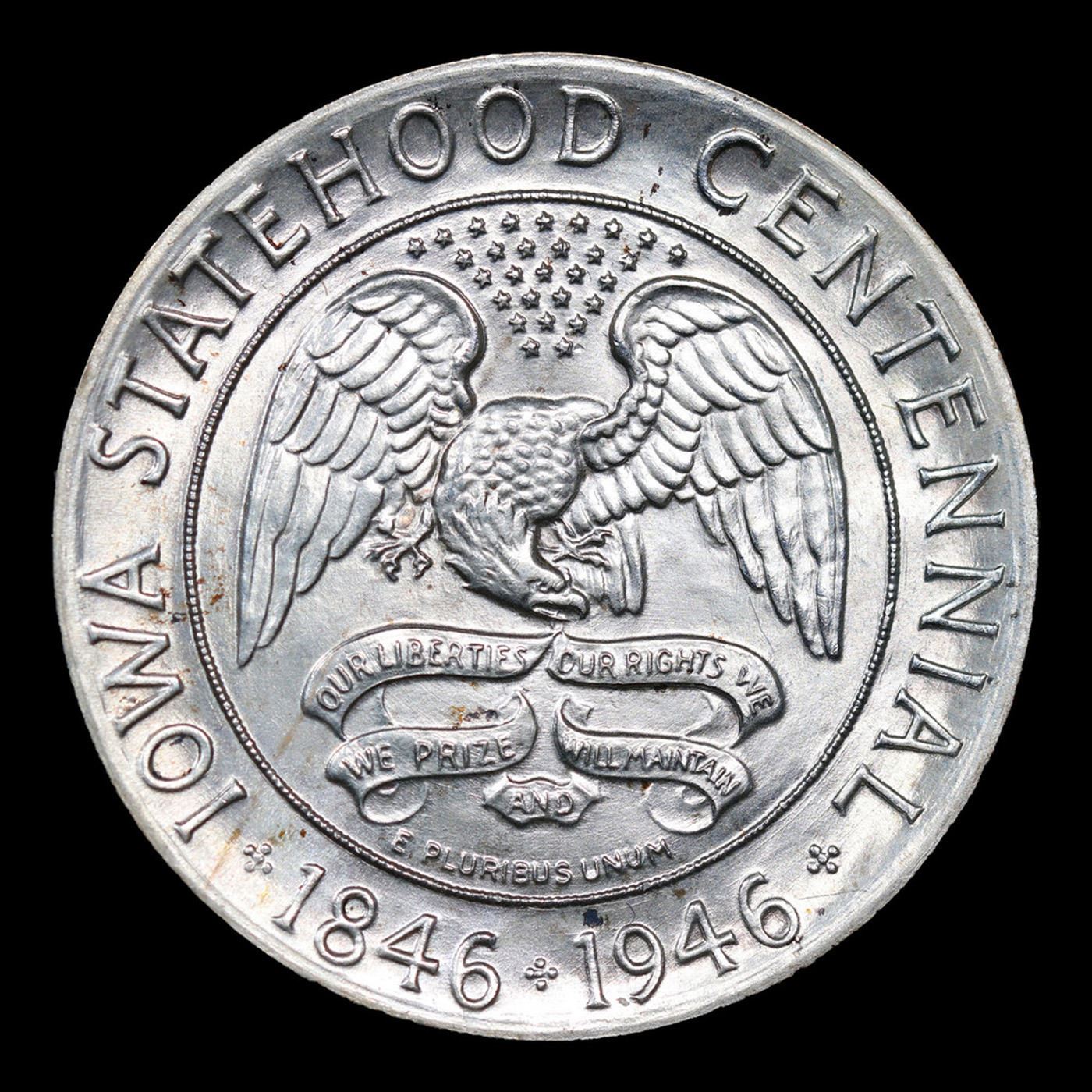1946 Iowa Old Commem Half Dollar 50c Grades Choice+ Unc. The Iowa Commemorative marks the Final Run of the Old US Commemorative Program. The Iowa and the Booker T. Washington were approved on the same day by President Truman and mark an End to the Program. When looking at an Iowa Commemorative, check for signs of wear on the Eagle’s Neck and Head, and on the Building’s Central Pillars.
