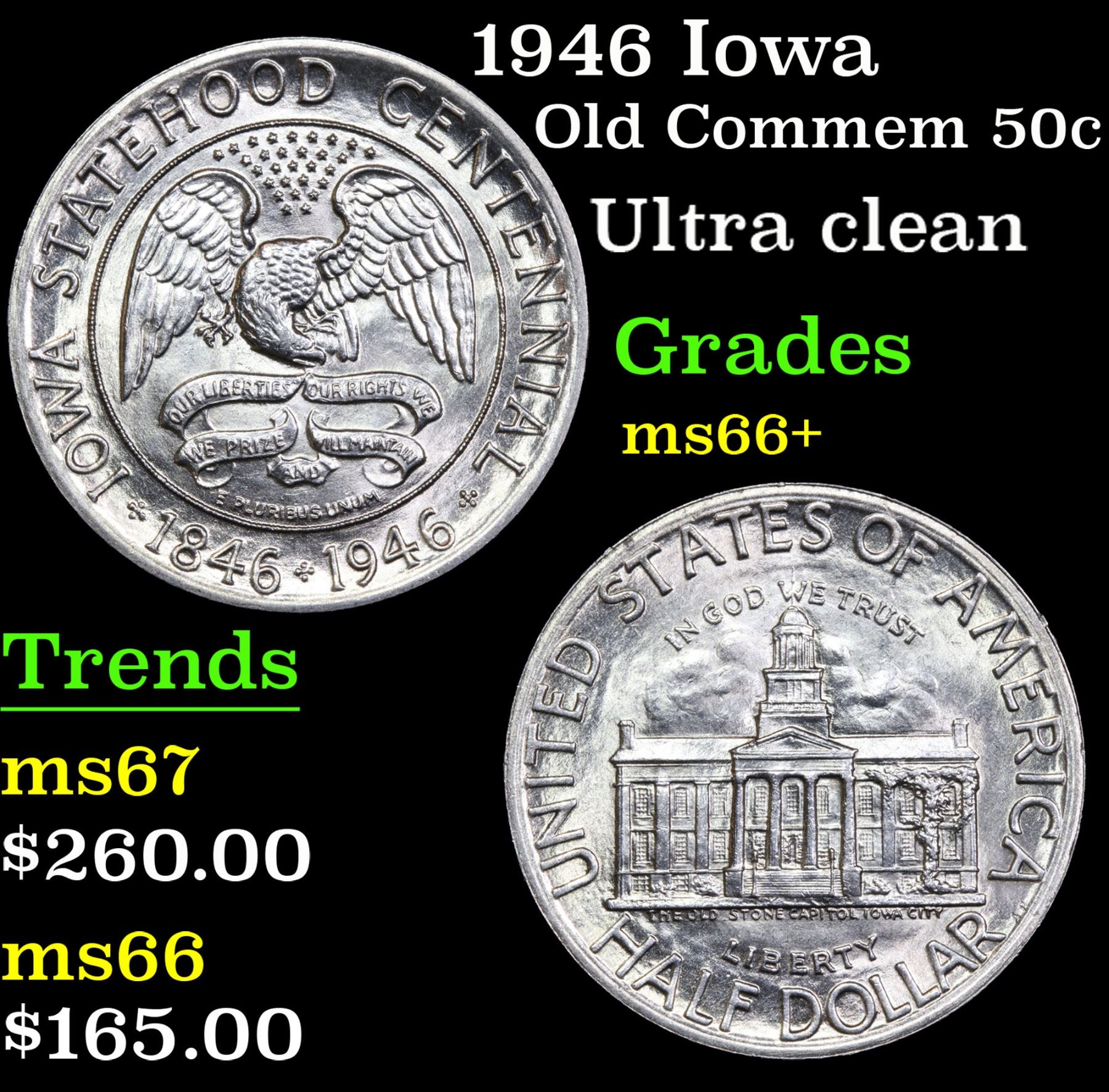 1946 Iowa Ultra clean . Old Commem Half Dollar 50c Grades GEM++ Unc. The Iowa Commemorative marks the Final Run of the Old US Commemorative Program. The Iowa and the Booker T. Washington were approved on the same day by President Truman and mark an End to the Program. When looking at an Iowa Commemorative, check for signs of wear on the EagleÕs Neck and Head, and on the BuildingÕs Central Pillars. A Corey's Pick