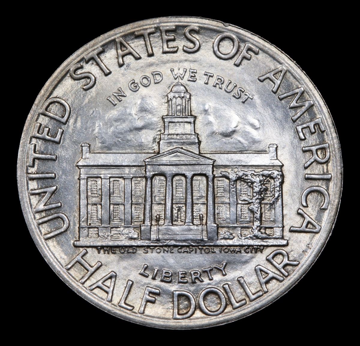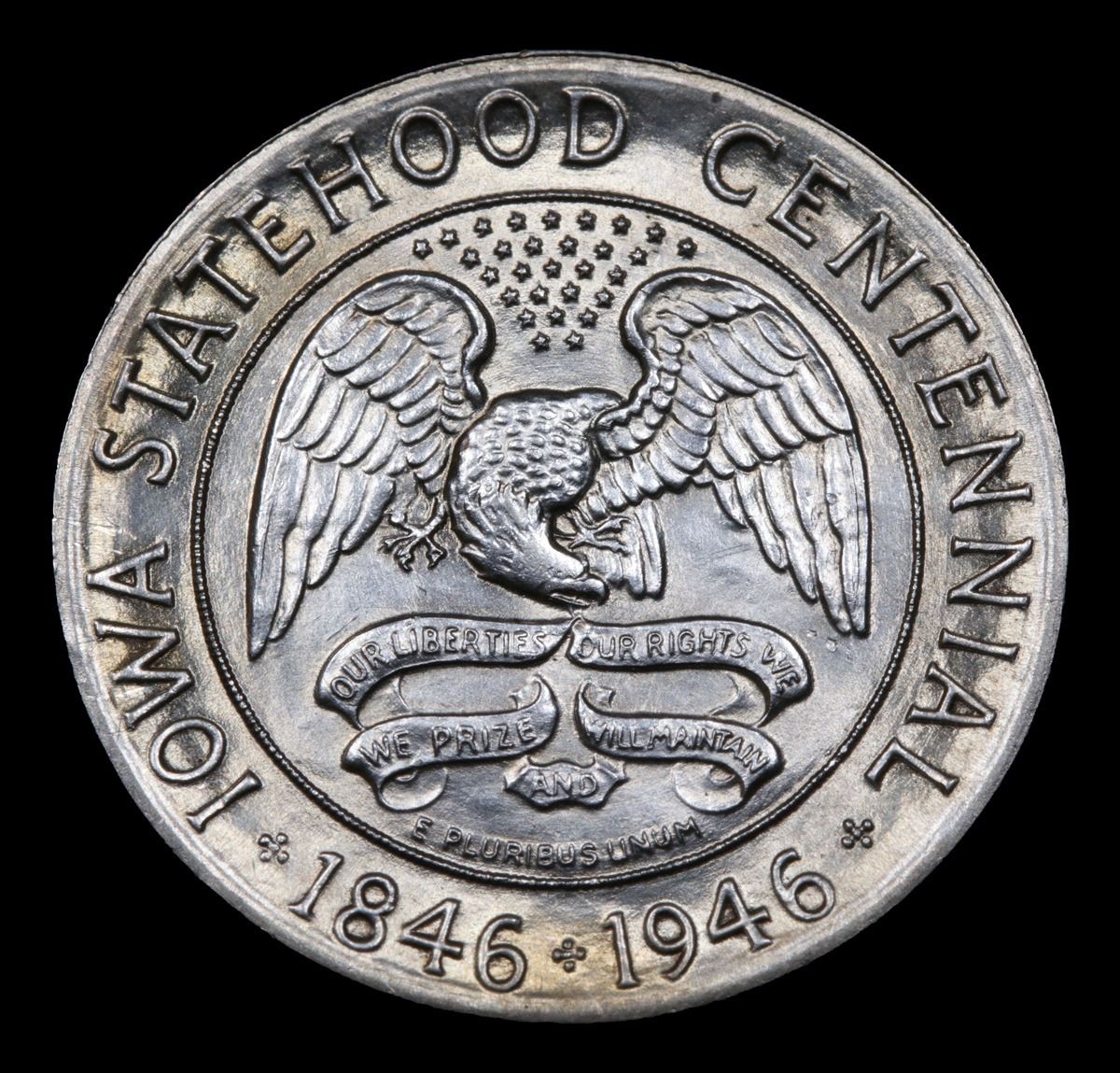 1946 Iowa Old Commem Half Dollar 50c Grades GEM+ Unc. The Iowa Commemorative marks the Final Run of the Old US Commemorative Program. The Iowa and the Booker T. Washington were approved on the same day by President Truman and mark an End to the Program. When looking at an Iowa Commemorative, check for signs of wear on the Eagle’s Neck and Head, and on the Building’s Central Pillars.