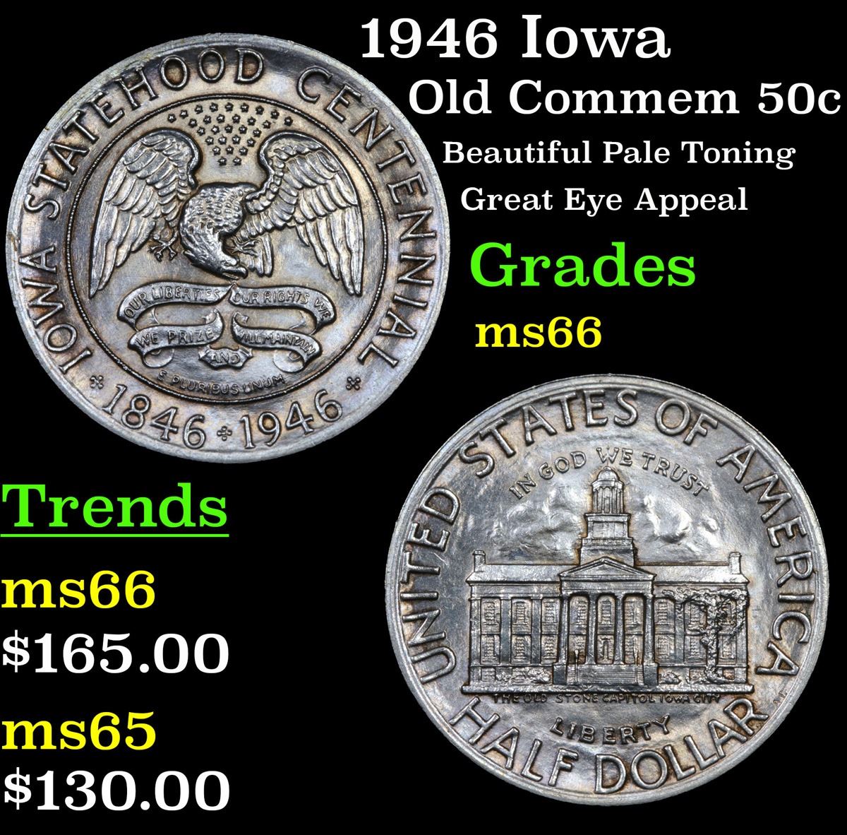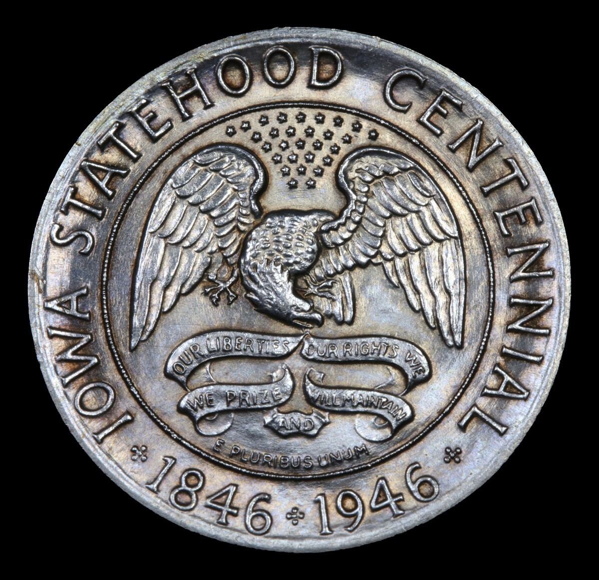 1946 Iowa Old Commem Half Dollar 50c Grades GEM+ Unc. The Iowa Commemorative marks the Final Run of the Old US Commemorative Program. The Iowa and the Booker T. Washington were approved on the same day by President Truman and mark an End to the Program. When looking at an Iowa Commemorative, check for signs of wear on the Eagle’s Neck and Head, and on the Building’s Central Pillars.