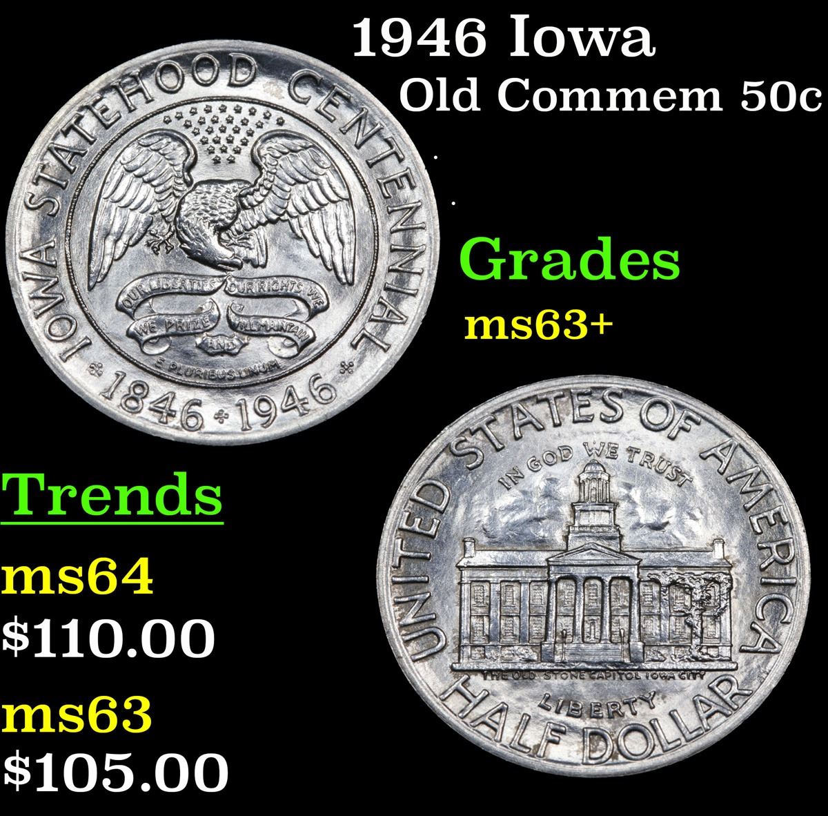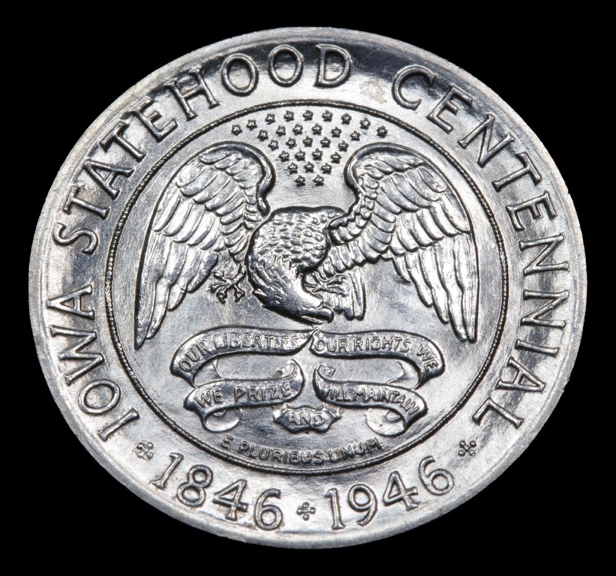 1946 Iowa Old Commem Half Dollar 50c Grades Select+ Unc. The Iowa Commemorative marks the Final Run of the Old US Commemorative Program. The Iowa and the Booker T. Washington were approved on the same day by President Truman and mark an End to the Program. When looking at an Iowa Commemorative, check for signs of wear on the Eagle’s Neck and Head, and on the Building’s Central Pillars.