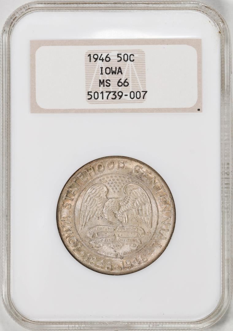 One 1946 Iowa Statehood Commemorative Half Dollar Coin NGC MS66. NGC Certified.