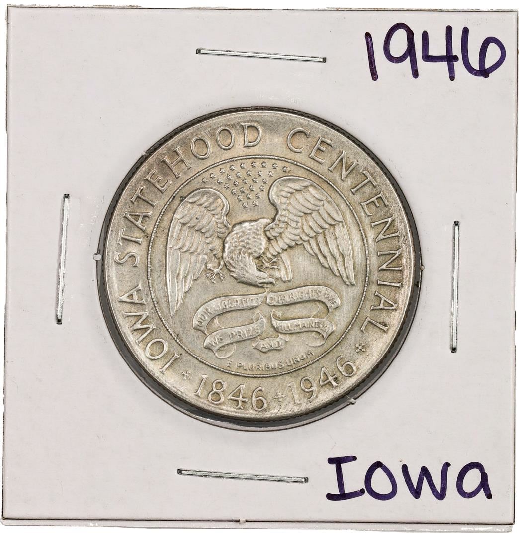 One 1946 Iowa Statehood Commemorative Half Dollar Coin.