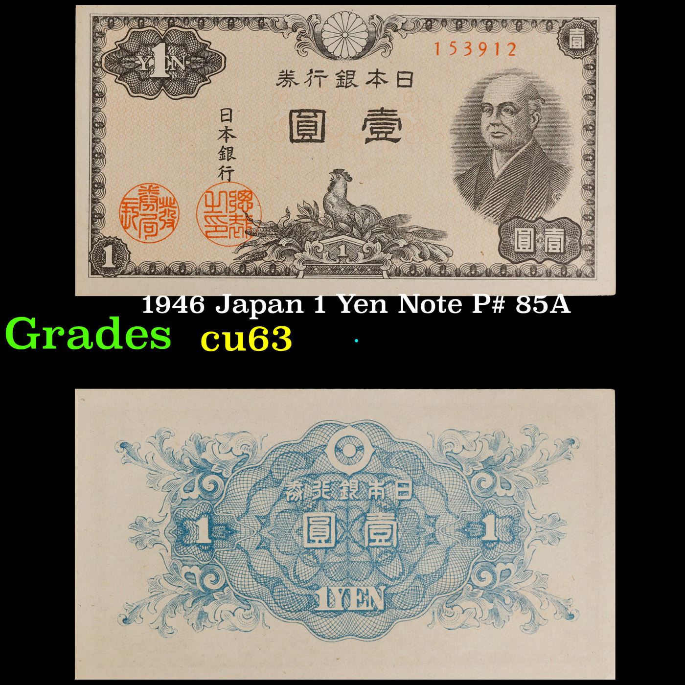 1946 Japan 1 Yen Note P# 85A Grades Select CU.