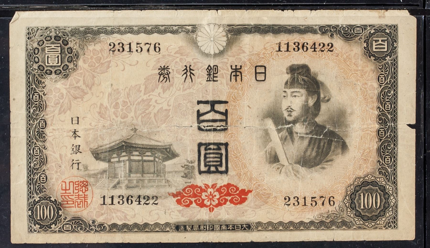 1946 Japanese 100 Yen banknote. Issued in 1946. They were withdrawn from circulation in 1956.