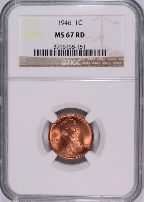 1946 LINCOLN CENT, NGC MS-67 RED! RARE!! POPULATION 35! NONE HIGHER!!