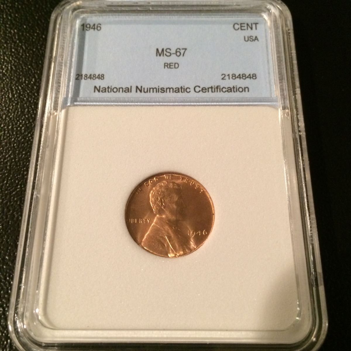 1946 Lincoln Cent NNC MS67 Red Value-$1550