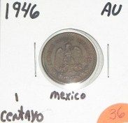 1946 MEXICO 1 CENTAVO *RARE AU HIGH GRADE NICE EARLY COIN WITH NICE DESIGN!! COIN CAME OUT OF SAFE!! ***Coin, Currency & All Items Listed in this auction - Grades, Conditions and Values are not Safe Deposit Coins LLC Responsibilty. Grades, Condition and Values are determined by Consigner(s) & Buyers ONLY