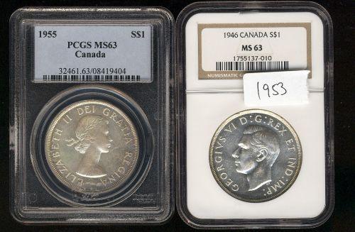 1946 NGC MS63, 1955 PCGS MS63, both coi