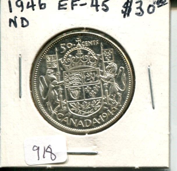 1946 Narrow Date Canadian Silver 50 Cents. EF-45. Nice.