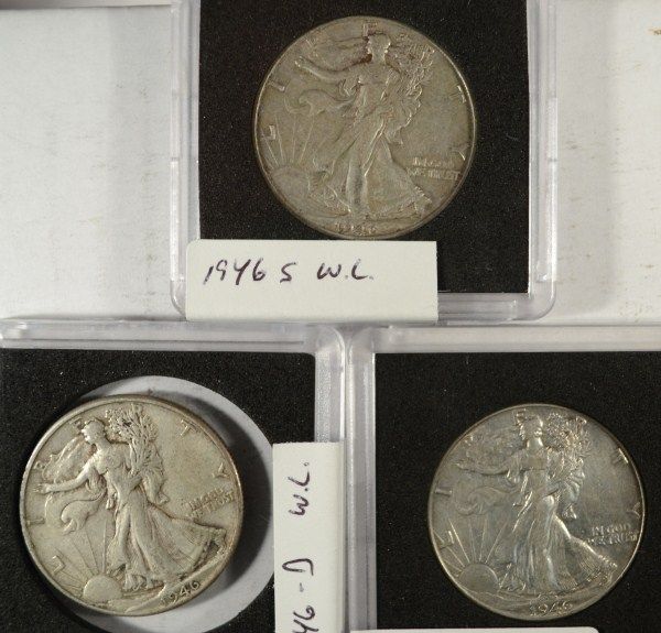 1946 P, D, & S SET OF WALKING LIBERTY HALVES ALL XF/AU