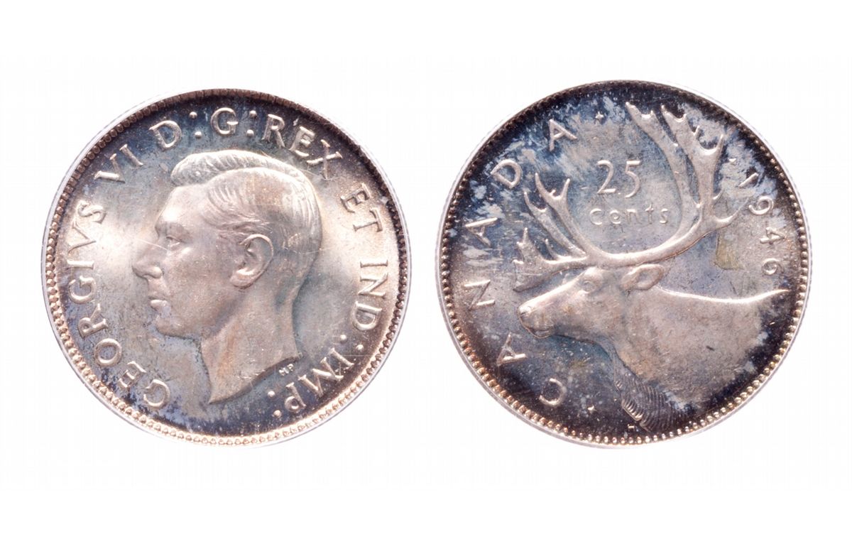 1946. PCGS graded Mint State-66. Very light, even 'P.Q.' toning. A Gem. Ex. Can. Coinoisseur C.N.A. 2002 auction, Lot #926.