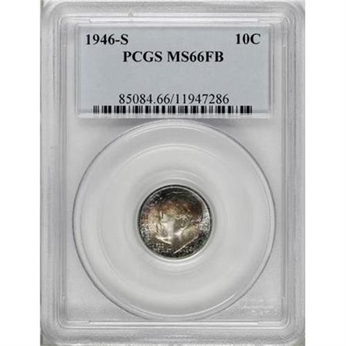 <B>1946-S 10C MS66 Full Bands PCGS.</B></I> PCGS Population (388/118). NGC Census: (0/0). Mintage: 27,900,000. (#85084)<BR><BR><B>Coin Engraver:</B> John R. Sinnock<BR><BR><b>Shipping:</b> Coins & Currency (<a target="_blank" href="http://www.heritageauctions.com/common/shipping.php">view shipping information</a>)