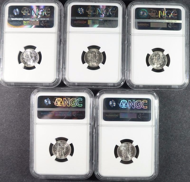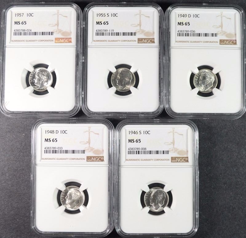1946-S, 1948-D, 1949-D, 1955-S & 1957 ROOSEVELT DIMES, NGC MS-65