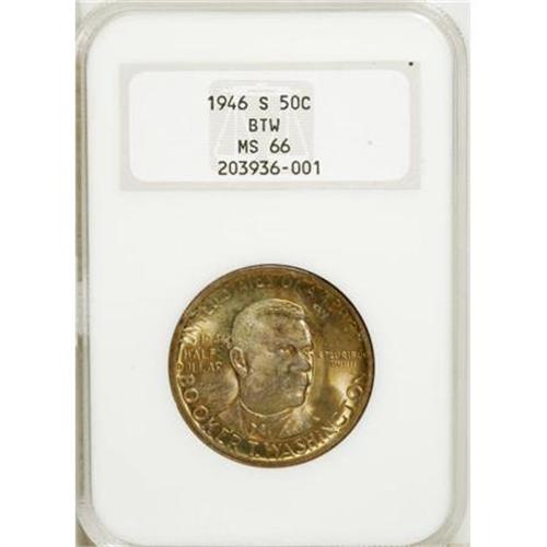 <B>1946-S 50C Booker T. Washington MS66 NGC.</B></I> NGC Census: (344/77). PCGS Population (295/42). Mintage: 500,279. Numismedia Wsl. Price for NGC/PCGS coin in MS66: $140. (#9406)<BR><BR><b>Shipping:</b> Coins & Currency (<a target="_blank" href="http://www.heritageauctions.com/common/shipping.php">view shipping information</a>)