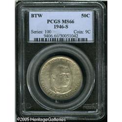 <B>1946-S 50C Booker T. Washington MS66 PCGS.</B></I> Glowing luster exudes through light olive-gray patina. The design elements are well struck throughout, and the surfaces are seemingly free of mentionable abrasions. Lot:8606