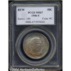 <table><tr><td><TABLE cellSpacing=0 cellPadding=0 width="100%" bgColor=#000000 border=0><TBODY> <TR><TD width="100%"><TABLE cellSpacing=1 cellPadding=3 width="100%" border=0><TBODY><TR><TD width="100%" bgColor=#79735c><FONT face=arial color=#ffffff size=3><B>Description</B> </FONT></TD></TR><TR><TD width="100%" bgColor=#ffffff><FONT face=arial size=2><B>1946-S 50C Booker T. Washington MS67 PCGS.</B></I> Deep crimson-red toning with occasional accents of blue, orange, and green scattered here and there. The surfaces are virtually abrasion-free. Terrific quality in this normally bagmarked issue. Population: 23 in 67, 0 finer (10/03). </FONT></TD></TR></TBODY></TABLE></TD></TR></TBODY></TABLE><BR><A name=PricesRealized></A><TABLE cellSpacing=0 cellPadding=0 width="100%" bgColor=#000000 border=0><TBODY><TR><TD width="100%"><TABLE cellSpacing=1 cellPadding=3 width="100%" border=0><TBODY><TR><TD width="100%" bgColor=#79735c><A name=PR><FONT face=arial color=#ffffff size=3><B>Previous Prices from Heritage Auctions</B> </FONT></A></TD></TR><TR><TD bgColor=#f6f6ed><TABLE cellSpacing=0 cellPadding=0 width="100%" border=1><TBODY><TR><TD align=middle width="33%"><B>Date</B></TD><TD align=middle width="33%"><B>Service</B></TD><TD align=middle width="33%"><B>Price</B></TD></TR><TR bgColor=whitesmoke><TD width="33%"><B>09/28/2002</B></TD><TD width="33%">NGC</TD><TD width="33%">$1,322.50</TD></TR><TR bgColor=whitesmoke><TD width="33%"><B>06/08/2002</B></TD><TD width="33%">NGC</TD><TD width="33%">$690.00</TD></TR><TR bgColor=whitesmoke><TD width="33%"><B>01/06/1996</B></TD><TD width="33%">PCGS</TD><TD width="33%">$495.00</TD></TR></TBODY></TABLE></TD></TR><TR><TD bgColor=#ffffff><FONT face=arial size=1 ?>PLEASE NOTE: All prices realized reflect the final hammer price PLUS the buyer's premium in auctions that charge a buyer's premium. Each item has a notation at the top of the listing indicating whether that lot included a buyer's premium. Example: A item that sells with a final hammer price of $100 and a 20% buyer's premium will display with a price realized of $120. All information listed is intended to be as accurate as possible, but errors are possible. Please use this guide carefully and inform us of any inaccuracies. </FONT></TD></TR></TBODY></TABLE></TD></TR></TBODY></TABLE><BR><TABLE cellSpacing=0 cellPadding=0 width="100%" bgColor=#000000 border=0><TBODY><TR><TD width="100%"><TABLE cellSpacing=1 cellPadding=3 width="100%" border=0><TBODY><TR><TD width="100%" bgColor=#79735c colSpan=6><FONT face=arial color=#ffffff size=3><B>Price Guide*</B> </FONT></TD></TR><TR bgColor=#f6f6ed><TD align=middle><B>Grade</B> </TD><TD align=middle><B>Coin World<BR>(Trends)</B> </TD><TD align=middle><B>Numismedia<BR>Retail</B> </TD><TD align=middle><B>Numismedia<BR>Wholesale</B> </TD><TD align=middle><B>Coin<BR>Universe</B> </TD><TD align=middle><B>Heritage<BR>Value Index</B> </TD></TR><TR bgColor=#ffffff><TD align=middle>66</TD><TD align=right>---</TD><TD align=right>$175.00</TD><TD align=right>$140.00</TD><TD align=right>$185.00</TD><TD align=right>$255.27</TD></TR><TR style="FONT-WEIGHT: bold" bgColor=#cccfdd><TD align=middle>67</TD><TD align=right>---</TD><TD align=right>---</TD><TD align=right>$1,250.00</TD><TD align=right>$2,000.00</TD><TD align=right>$1,131.25</TD></TR><TR bgColor=#ffffff><TD align=middle>68</TD><TD align=right>---</TD><TD align=right>---</TD><TD align=right>---</TD><TD align=right>---</TD><TD align=right>---</TD></TR><TR bgColor=#ffffff><TD colSpan=6><FONT size=1>*All information listed is intended to be as accurate as possible, but errors are possible. No item may be returned or refused based on this information which is provided as a service to our customers. You should contact each pricing source directly to determine the accuracy of this information. </FONT></TD></TR></TBODY></TABLE></TD></TR></TBODY></TABLE><BR><TABLE cellSpacing=0 cellPadding=0 width="100%" bgColor=#000000 border=0><TBODY><TR><TD width="100%"><TABLE cellSpacing=1 cellPadding=3 width="100%" border=0><TBODY><TR><TD width="100%" bgColor=#79735c><FONT face=arial color=#ffffff size=3><B>Population Guide</B> </FONT></TD></TR><TR bgColor=#ffffff><TD align=middle><!-- Begin Output of Population Grid--><TABLE cellSpacing=0 cellPadding=0 width="100%" border=0><TBODY><TR><TD vAlign=center><TABLE cellSpacing=0 width="100%" border=1 cellsadding="3"><TBODY><TR><TD vAlign=center><TABLE cellSpacing=0 cellPadding=3 width="100%" border=1><TBODY><TR><TD vAlign=center align=middle bgColor=#f0f1e8 colSpan=2 <CENTER><FONT face=Arial size=2><B>PCGS Pop </B></FONT><CENTER></CENTER></TD><TD vAlign=center align=middle bgColor=#f0f1e8 colSpan=2><CENTER><FONT face=Arial size=2><B>NGC Pop</B></CENTER></FONT></TD></TR><TR><TD vAlign=center><FONT face=Arial size=2>(67)</FONT> </TD><TD vAlign=center align=right><FONT face=Arial size=2>24</FONT> </TD><TD vAlign=center><FONT face=Arial size=2>(67)</FONT> </TD><TD vAlign=center align=right><FONT face=Arial size=2>53</FONT> </TD></TR><TR><TD vAlign=center><FONT face=Arial size=2>(>67)</FONT> </TD><TD vAlign=center align=right><FONT face=Arial size=2>0</FONT> </TD><TD vAlign=center><FONT face=Arial size=2>(>67)</FONT> </TD><TD vAlign=center align=right><FONT face=Arial size=2>3</FONT> </TD></TR></TBODY></TABLE></TD></TR></TBODY></TABLE></TD></TR></TBODY></TABLE><!-- End Output of Population Grid--></TD></TR></TBODY></TABLE></TD></TR></TBODY></TABLE><BR><TABLE cellSpacing=0 cellPadding=0 width="100%" bgColor=#000000 border=0><TBODY><TR> <font color='#000000'><span style='background-color: #FFFFFF'><td bgcolor='#FFFFFE'> Important notice: Heritage usually auctions material at the rate of 200-250 lots per hour. On some occasions eBay Live bid software or the Internet may not be able to keep up with the pace of the auction. We recommend placing a realistic absentee bid now as insurance to avoid disappointment. Occasionally the auctioneer may eliminate or reject an eBay Live bid, and the auctioneer may also reo