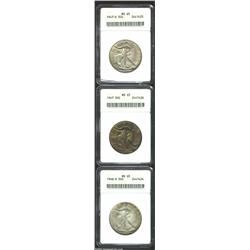 1946-S 50C MS65 ANACS, nicely struck for an S-mint Walker, with dusky patina and immaculate surfaces; 1947 MS65 ANACS, spectacularly toned in orange, gold, green, and violet hues; and a 1947-D MS65 ANACS, a reasonable strike, milky lilac patina with pleasing preservation, the ANACS holder is cracked. 3 coins Important notice: We expect to be auctioning lots at the rate of 200-250 per hour. Sometimes eBay Premier live bid software cannot keep up with that pace, so we strongly recommend that you place a realistic proxy bid now as insurance to avoid disappointment. Also please note that all Heritage/CAA lots purchased through eBay Premier carry a 20% Buyer's Premium. Please make sure you read the Terms and Conditions.