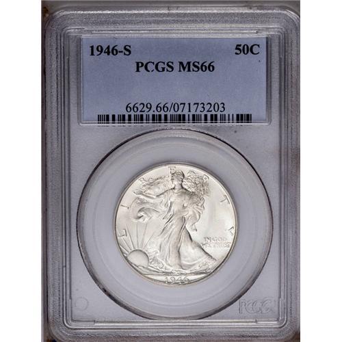 1946-S 50C MS66 PCGS. A frosty Gem with bright silver 1946-S[50C] MS66 PCGS.