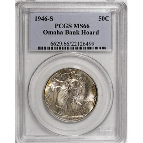 <B>1946-S 50C MS66 PCGS.</B></I> Ex: Omaha Bank Hoard. PCGS Population (1245/18). NGC Census: (1027/44). Mintage: 3,724,000. Numismedia Wsl. Price for NGC/PCGS coin in MS66: $220. (#6629)<BR><BR><B>Coin Engraver:</B> Adolph A. Weinman<BR><BR><b>Shipping:</b> Coins & Currency (<a target="_blank" href="http://www.heritageauctions.com/common/shipping.php">view shipping information</a>)