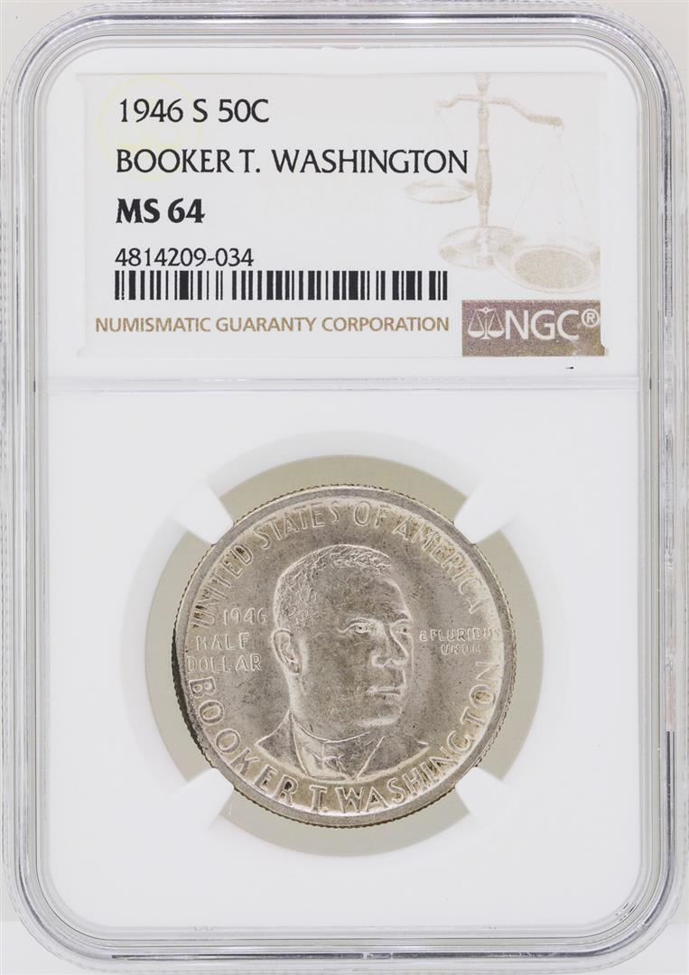 One 1946-S Booker T. Washington Memorial Half Dollar Coin NGC MS64. NGC Certified.
