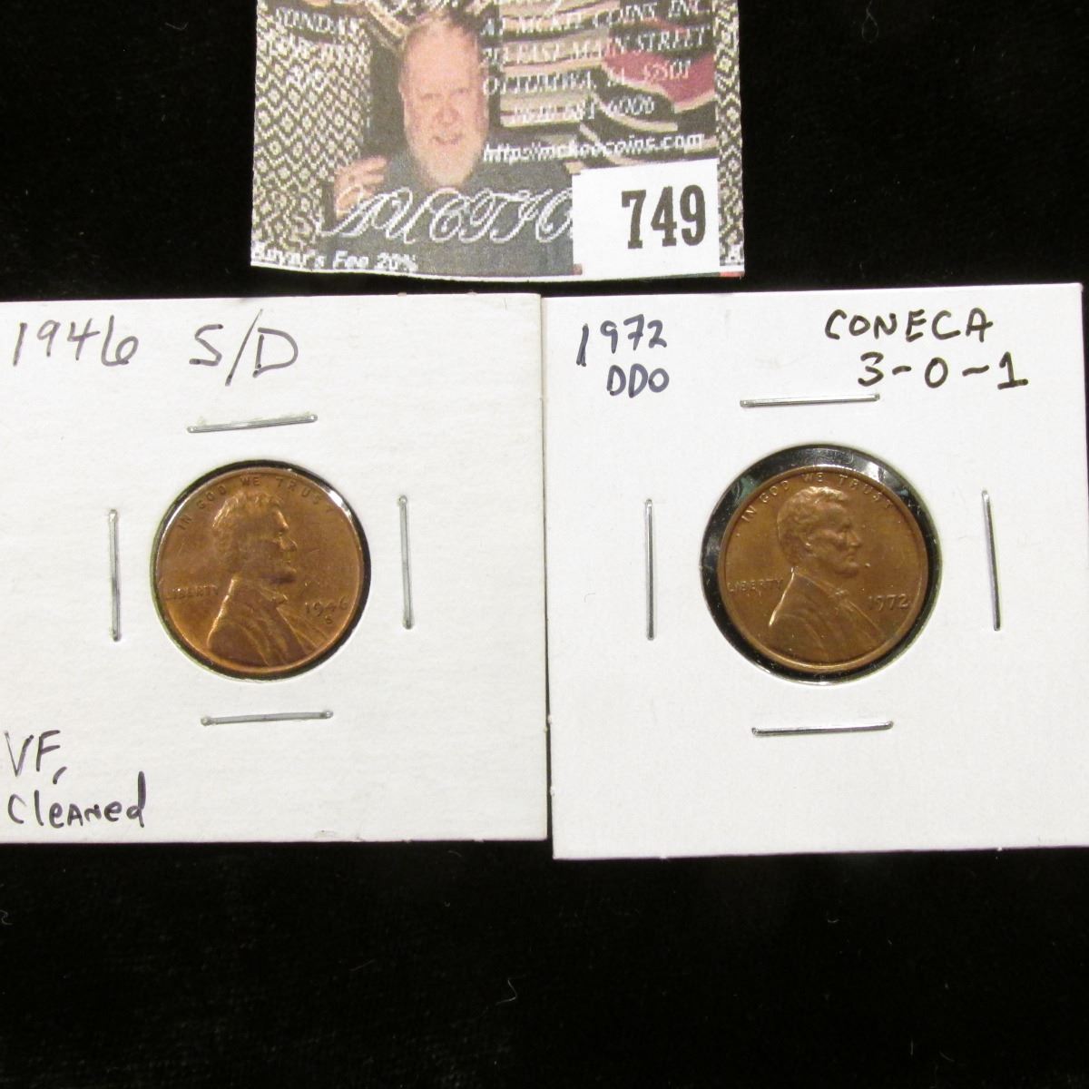 1946 S/D VF Cleaned, & 1972 Double Die Obverse, CONECA 3-0-1 Lincoln Cents.