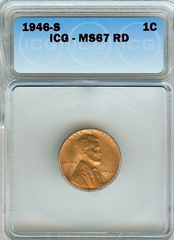 1946-S LINCOLN WHEAT CENT ICG MS-67 RED RARE THIS NICE!