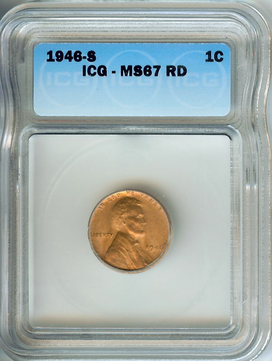 1946-S LINCOLN WHEAT CENT ICG MS67 RED