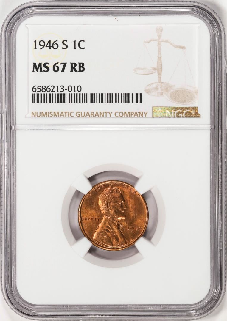 One 1946-S Lincoln Wheat Cent Coin NGC MS67RB. NGC Certified.