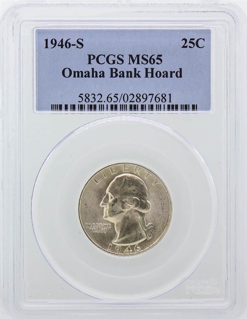 One 1946-S Quarter Omaha Bank Hoard PCGS Graded MS65. PCGS Graded.