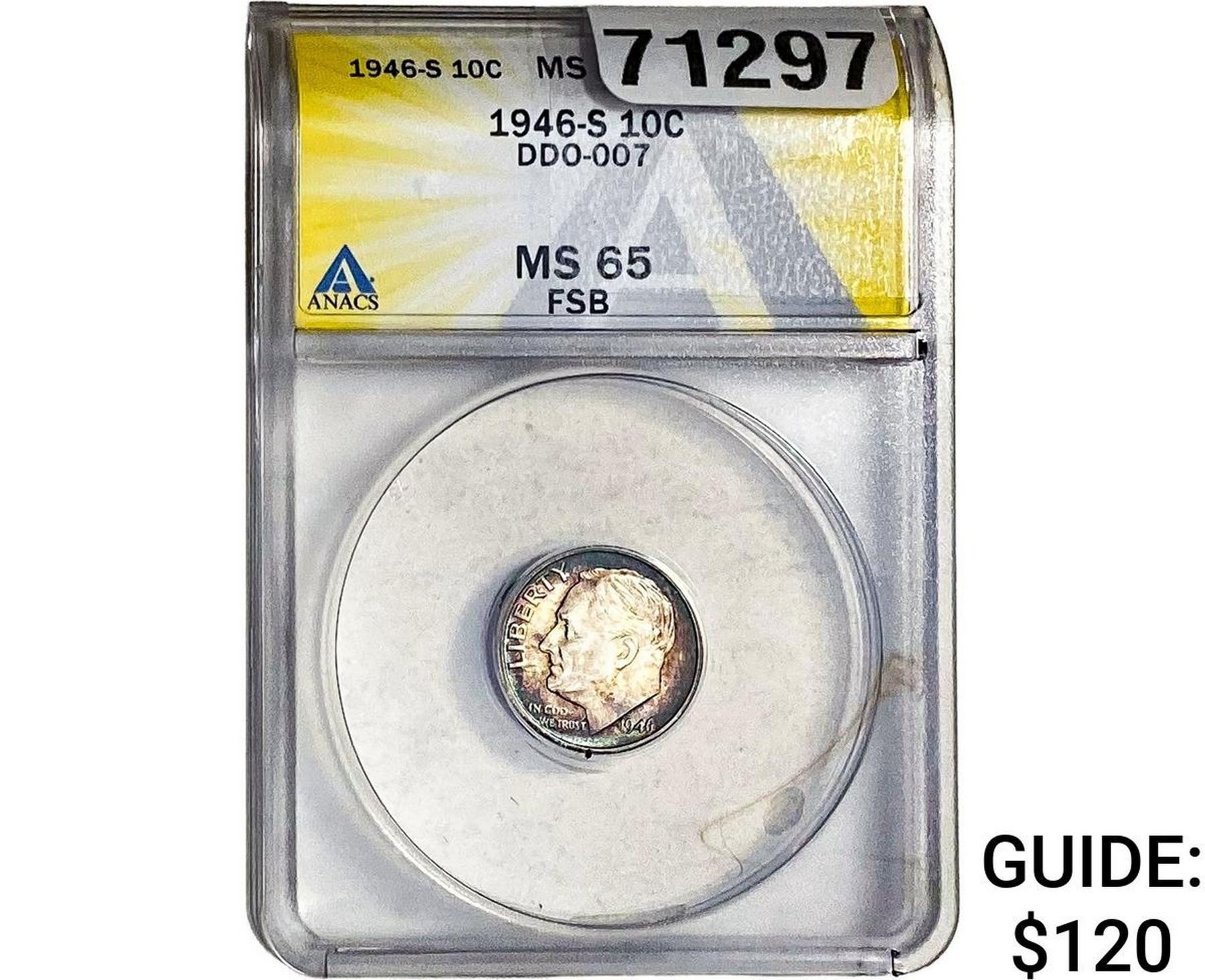 1946-S Roosevelt Dime ANACS MS65 FSB