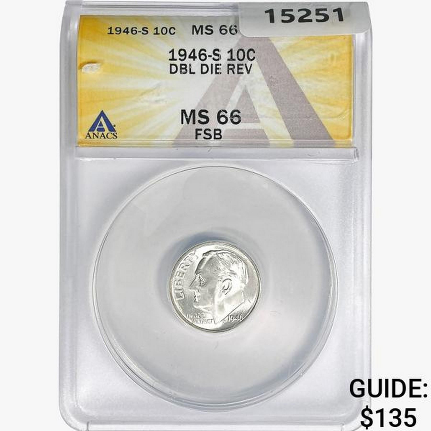 1946-S Roosevelt Dime ANACS MS66 FSB DBL Die REV