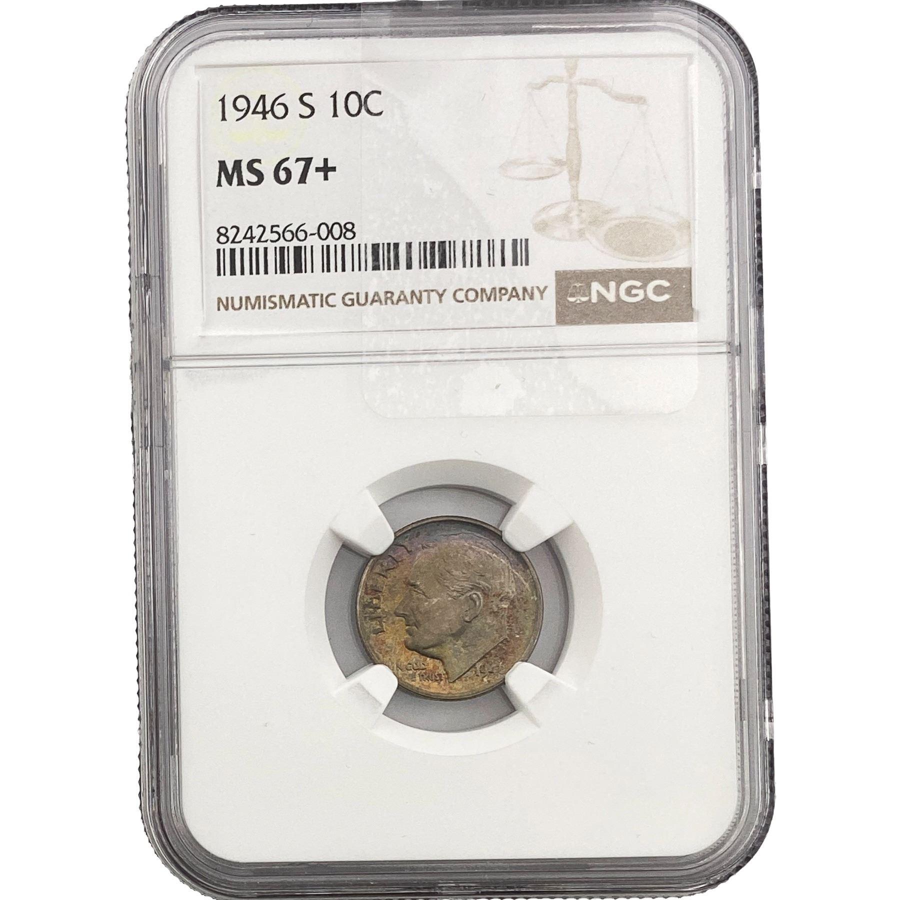 1946-S Roosevelt Dime NGC MS67+