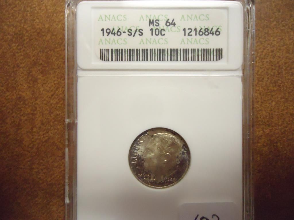1946-S/S SILVER ROOSEVELT DIME ANACS MS64