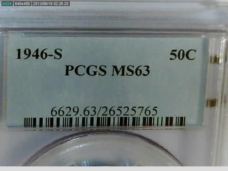 1946 S WALKING LIBERTY HALF DOLLAR PCGS CERTIFIED MS63. PCGS CERT #26525765.