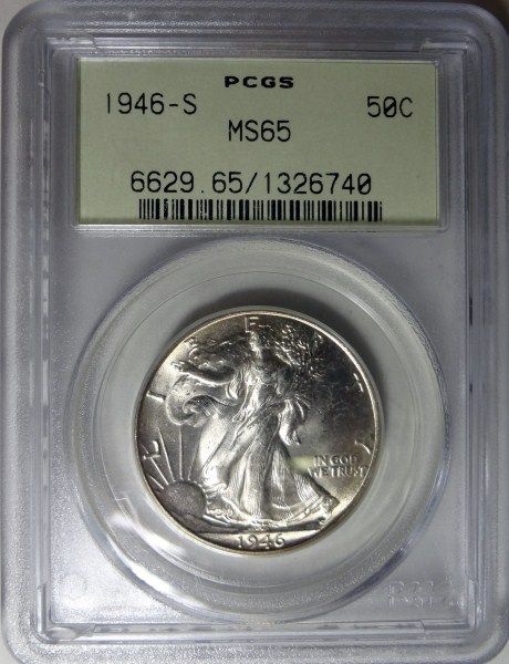 1946-S WALKING LIBERTY HALF DOLLAR PCGS MS65 GEM GREEN LABEL EST. $155-$170
